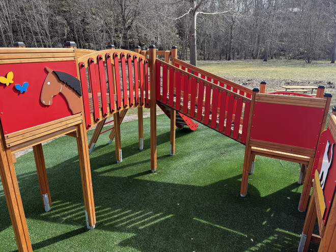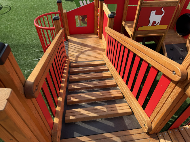 Produk ini terbuat dari bahan berkualitas tinggi seperti kayu larch yang kuat, baja tahan karat, serta baja berlapis bubuk yang tahan lama. Dilengkapi dengan tali PP yang diperkuat, plywood anti-slip tahan air, serta elemen HDPE, PE, dan polikarbonat (PC) yang aman dan tahan terhadap cuaca, memastikan ketahanan dan keamanan jangka panjang dalam berbagai kondisi.