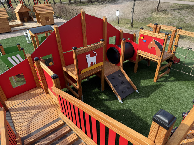 Barn sangat ideal untuk ditempatkan di taman bermain, sekolah, atau area rekreasi umum. Desainnya yang menarik dan fungsi yang beragam mendorong anak-anak untuk aktif bergerak, berimajinasi, serta berinteraksi sosial. Wahana ini tidak hanya menyenangkan tetapi juga mendukung perkembangan motorik dan kognitif anak secara menyeluruh.