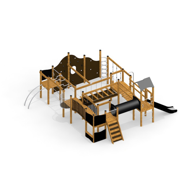 King-Kong Nature II dibuat dari kombinasi bahan berkualitas tinggi seperti kayu larch dan pinus yang kuat, baja galvanis dan stainless steel yang tahan karat, serta bahan daur ulang HDPE yang ramah lingkungan. Tambahan tali PP lembut, fiberglass, triplek tahan air anti selip, serta rantai stainless steel memastikan struktur yang kokoh dan tahan lama, sekaligus memberikan kenyamanan dan keamanan bagi anak-anak saat bermain.